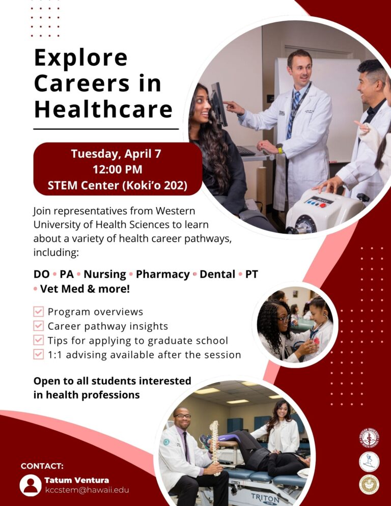 Aloha mai! Come join us at the STEM Center for a Health Professions Information Session featuring representatives from Western University of Health Sciences. Learn about